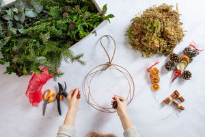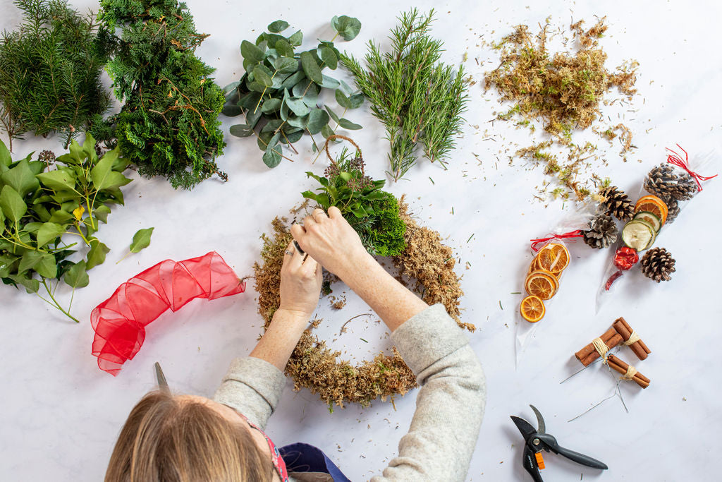 Please note - you will need your own pair of strong scissors or secateurs for cutting the foliage to length. Feel free to supplement with additional foliage form your garden, but we will provide you with enough foliage for a lovely full-sized wreath.