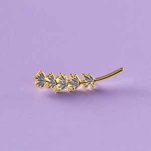 Our bespoke Lavender Sprig Pin is a perfect little gift for anyone who loves gardening or flowers. Made from shiny metal and hard enamel with two pins to ensure that it stays in place, presented on a card with floral design.