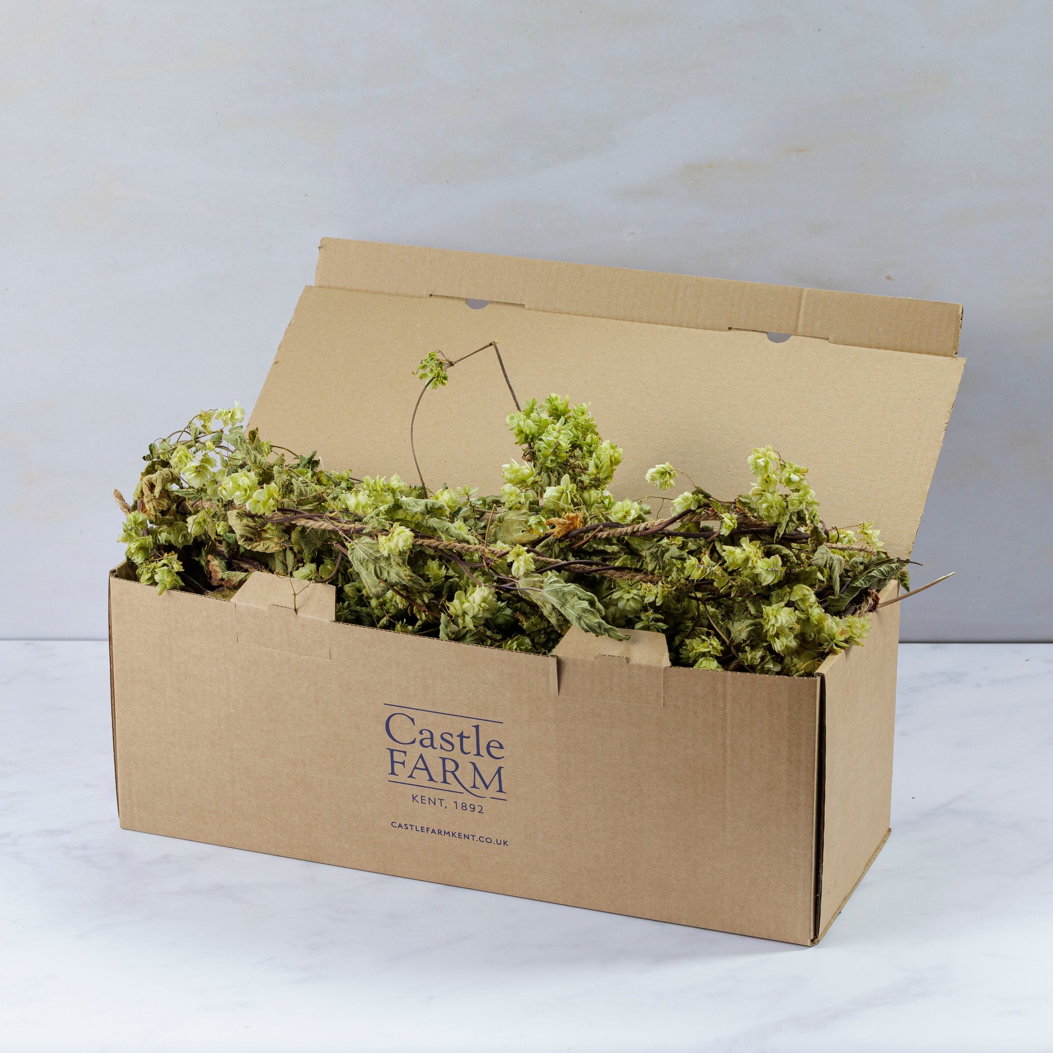 We have been growing Hop Bines (or Hop Garlands) on Castle Farm for generations, and our hops have won Gold Medals at the RHS Chelsea Flower Show! Our Hop Bines are grown especially for decorative use, at wide spacings to to promote flowering along the full length of the bine.