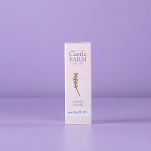 Lavender Massage Oil – A high-quality blended massage oil with relaxing Castle Farm Lavender, English camomile and neroli. Ready for immediate use for massage.